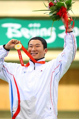 Jin Jong-oh – nejlepší korejský ostřelovač, který si v Pekingu vystřílel hned dvě medaile. Zlatou na vzdálenost 50m a stříbrnou na 10m. Před čtyřmi lety v Aténách získal stříbro. Zajímavé je, že v obou disciplínách soupeřil o stupně vítězů s protivníkem ze Severní Koreje, Kim Jong-suem. V obou závodech skončil vždy o příčku výš než Kim, což jiště soudruhy nepotěšilo. Co je ale muselo vyloženě naštvat, byla dodatečná diskvalifika Kima pro doping. A ještě zajímější je fakt, že soudruzi Kimovu diskvalifikaci před národem utajili. Normální Severokorejci si tedy myslí, že mají o dvě medaile více, než je tomu ve skutečnosti.